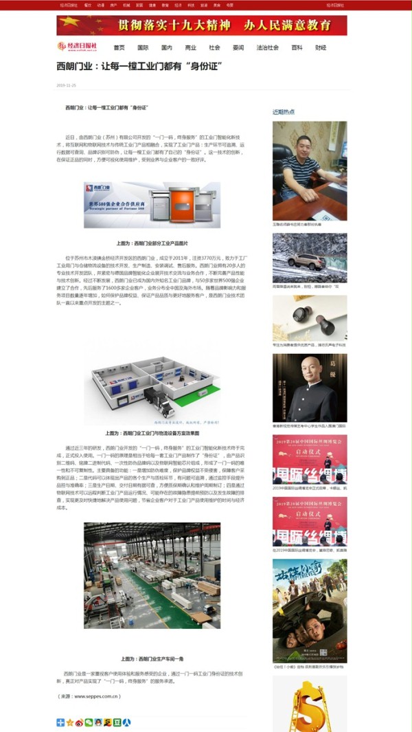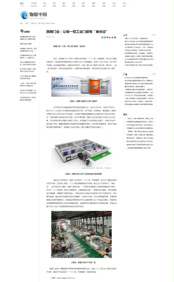 上圖為:《物聯中國》對西朗門業的報道