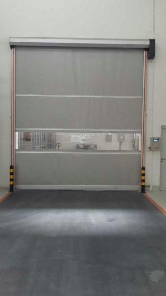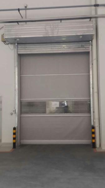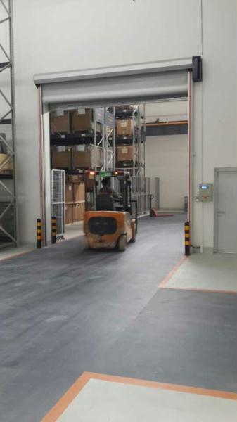 此批鋁合金框架快速門,業主選用的是地磁環感應自動開門配置,車間內當有叉車準備從快速門處通過時,車輛進入地磁感應區域后,迅速觸發開門信號給西朗伺服控制系統,伺服快速門以1.5米/秒的速度快速開啟,車輛順利通過,車輛通過約幾秒后,伺服快速卷簾門自動延時關門,使快速門處于常閉狀態,保證室內的密閉效果和潔凈度。同時伺服快速門還配有安全電眼保護系統,當人或車輛在門下時,門不關,或者門正在關門過程中時,有人或車輛到門下,觸發紅外電眼,門體快速反彈至最開位,保證人員及車輛的安全。
