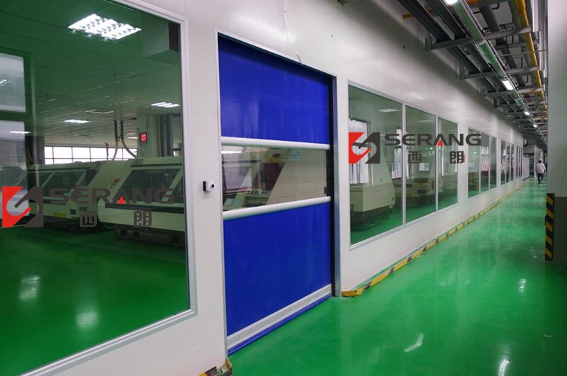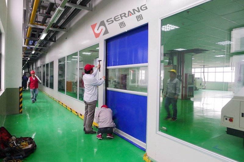 西朗門業訊:近日,在蘇州市吳中區吳松江出口加工區的工業廠房內,業主訂購的一批蘇州西朗門業生產的工業快速門安裝調試完畢,通過業主驗收正式投入使用。該批快速門采用藍色快速門簾,鋁合金型材抗風肋條,噴塑處理快速門外框架,底部采用U型氣密結構,用在業主的凈化車間內。蘇州快速門圖片如下:
