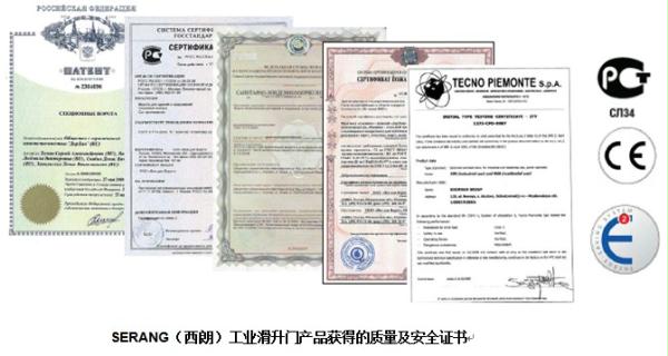 SERANG(西朗)工業滑升門產品獲得的質量及安全證書